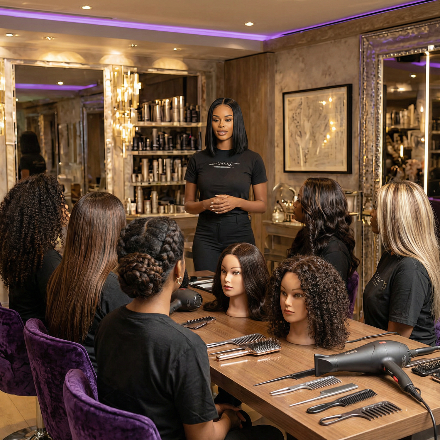 At Whiplash Salon, we believe beauty is more than a look — it’s a skill, an art, and a way to empower others. Our classes and events are designed to give both aspiring stylists and seasoned professionals the knowledge, confidence, and techniques to take their craft to the next level. Whiplash Masterclasses deliver elite, hands-on beauty education designed to elevate your craft. Led by industry experts, these luxury-focused sessions teach precision lacefront installation, advanced weave techniques, and professional salon skills in a supportive, empowering environment for Black women. Whether you're perfecting your technique or leveling up your career, Whiplash Masterclasses give you the confidence, clarity, and mastery to stand out in the beauty industry.